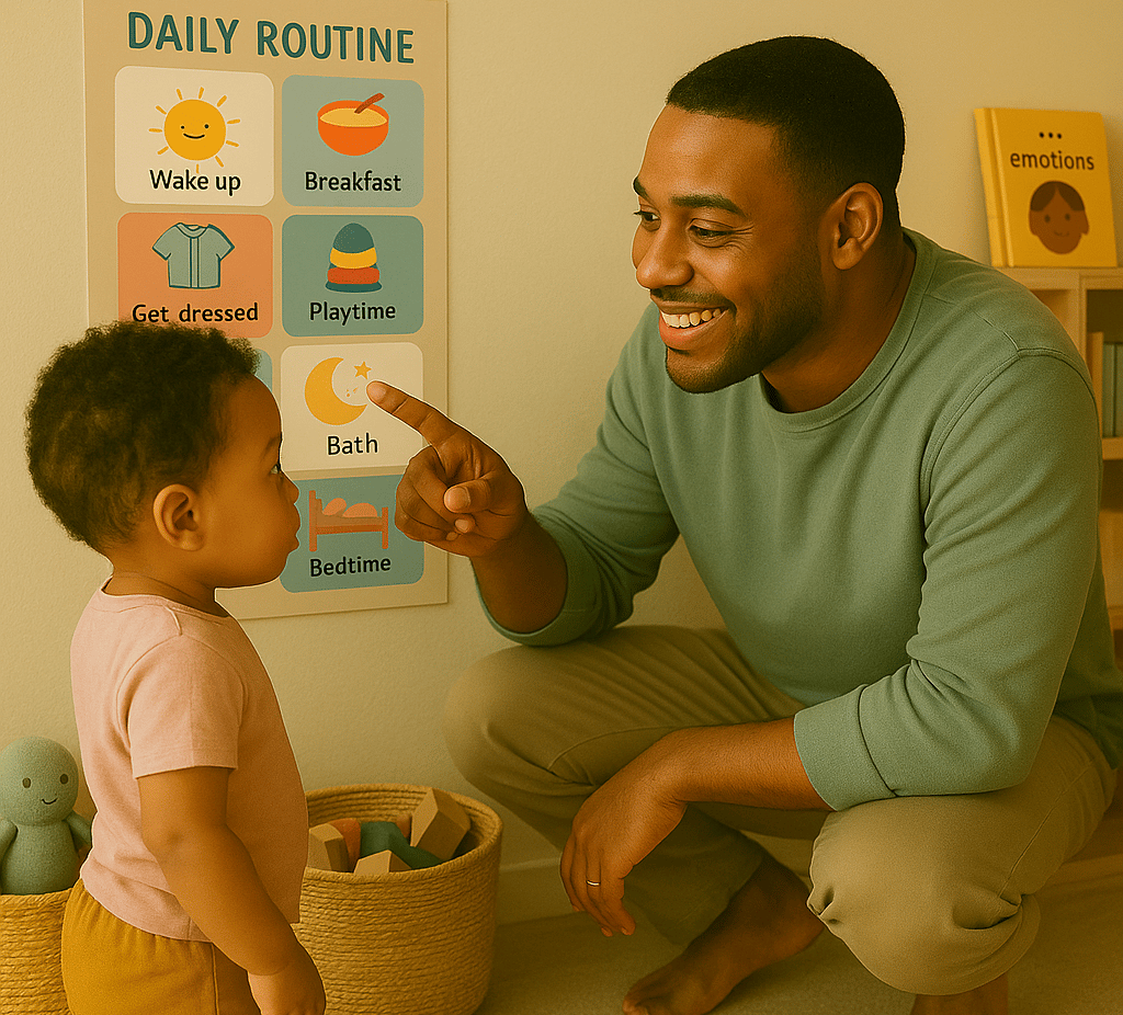 Produto útil: Quadros de rotina com imagens das atividades diárias ajudam a criança a entender a sequência do dia e reduzem resistência.