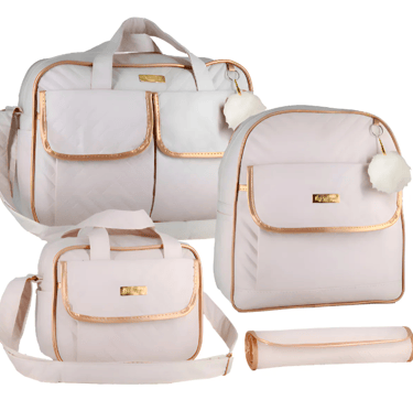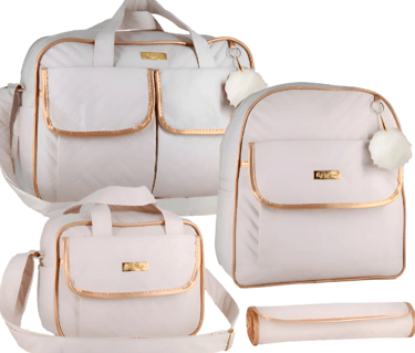 Kit Bolsa maternidade com mochila para menina e menino cor creme Bambinelli