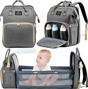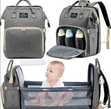Bolsa Mochila Maternidade Vira Berço Troca Bebê Porta Frauda Cor Cinza Desenho do tecido Liso